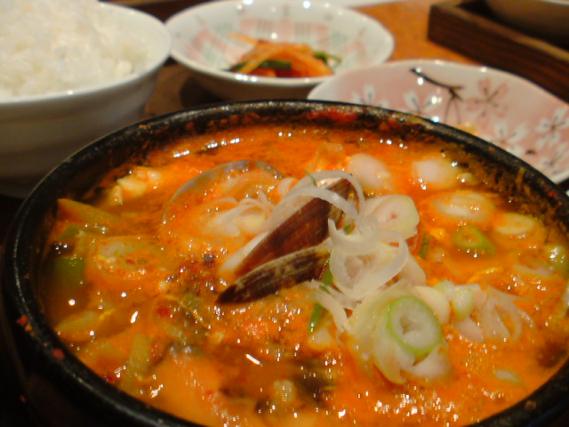 音楽の話じゃなくてゴメンナサイ。 アジカンはアジカンでも「あじ韓」が正しい表記です☆ 今日は珍しくちゃんとしたランチを食べてきた。 (いつもは1本満足バーを1個食べるだけなので) ZIPからも歩いて数分のコリアン・ダイニング「あじ韓」。 デイタイムスタッフがしょっちゅう行くお気に入りのお店で、 ぼくも時々いっしょに行くグルメスポット。 今日は「海鮮スンドゥブ」を頂いたんだけど、あさりを始め 海老、イカなどの海の幸から出るダシを活かしたピリ辛スープに プルンプルンの豆腐が入り、卵まで落としてある具沢山鍋。 ふーふー、ひーひー言いながら、最後の一滴まで完食する頃には 額と鼻の先から汗が流れ落ちる。 年間通して美味しく食べられる鍋料理だけど、この先やってくる 寒い冬に頂いたら最高に体が温まる逸品! すごく家庭的な女将さん&スタッフも超魅力的!! いつもはランチタイムにばっかり行ってるけど、今度ゆっくり 夕食&お酒を楽しみに出掛けてみたい♪ あじ韓のサイトは http://www.ajikan.co.jp |