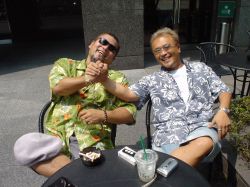 DJ仲間であり、格闘技「PRIDE」のオフィシャル・ナビゲーターとしても知られるケイ・グラントと久しぶりに会った。さすがに「デカイ」!ぼくが子供に見える!?(笑)